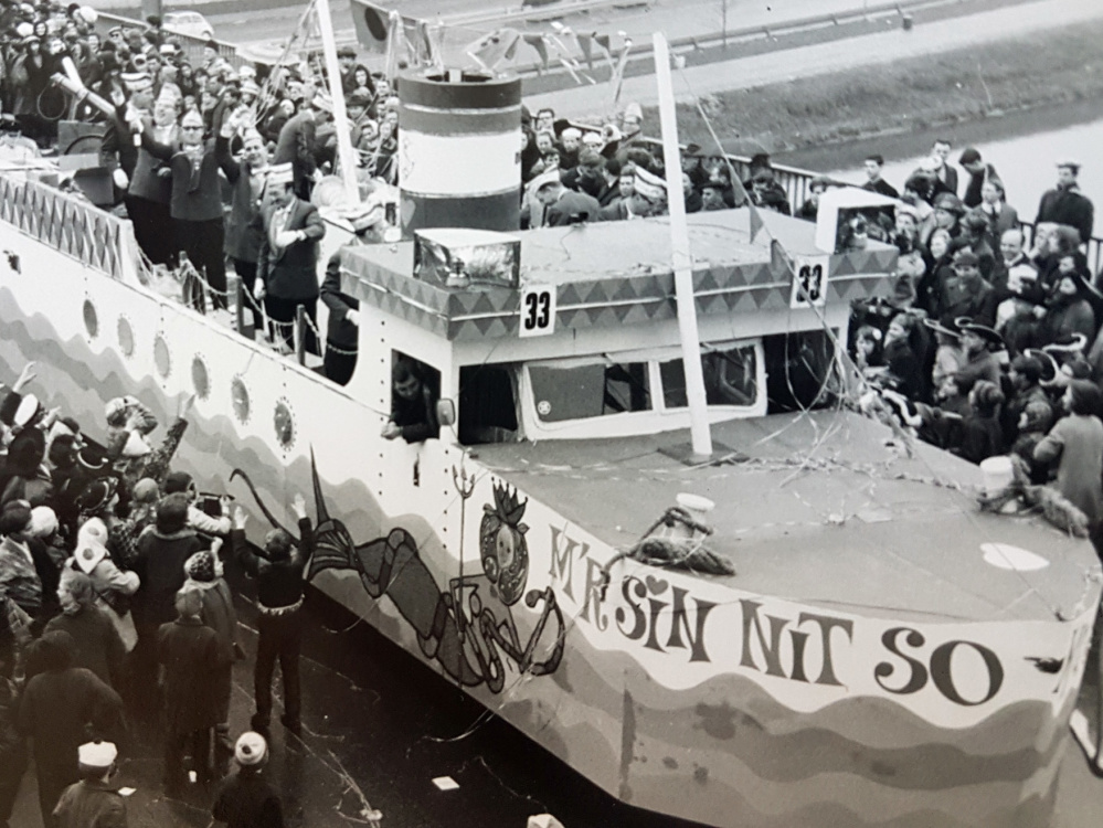 Historische Faschingsfotos: Umzugsschiff der M'r sin nit so - Volker Mildenberger