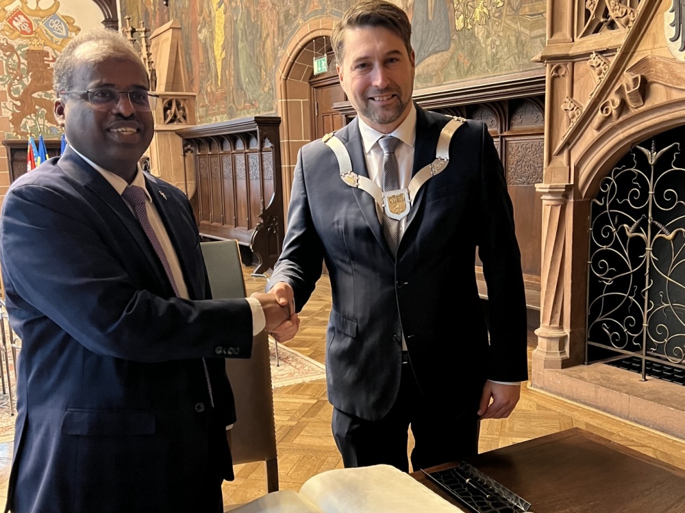 Oberbürgermeister Uwe Conradt hat am 19. Mai 2025 den Ehrenbürger Professor Tzvi Avni im Saarbrücker Rathaus empfangen.